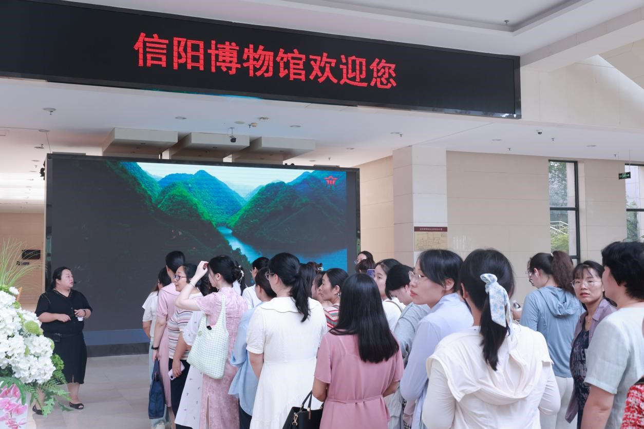 8月24日上午,2025年“义务教育师资薄弱环节改善暨中小学教师素质提升工程”万名优秀中青年教师培育计划项目的学员在班主任萧晟洁的组织带领下,前往信阳市博物馆参观学习。